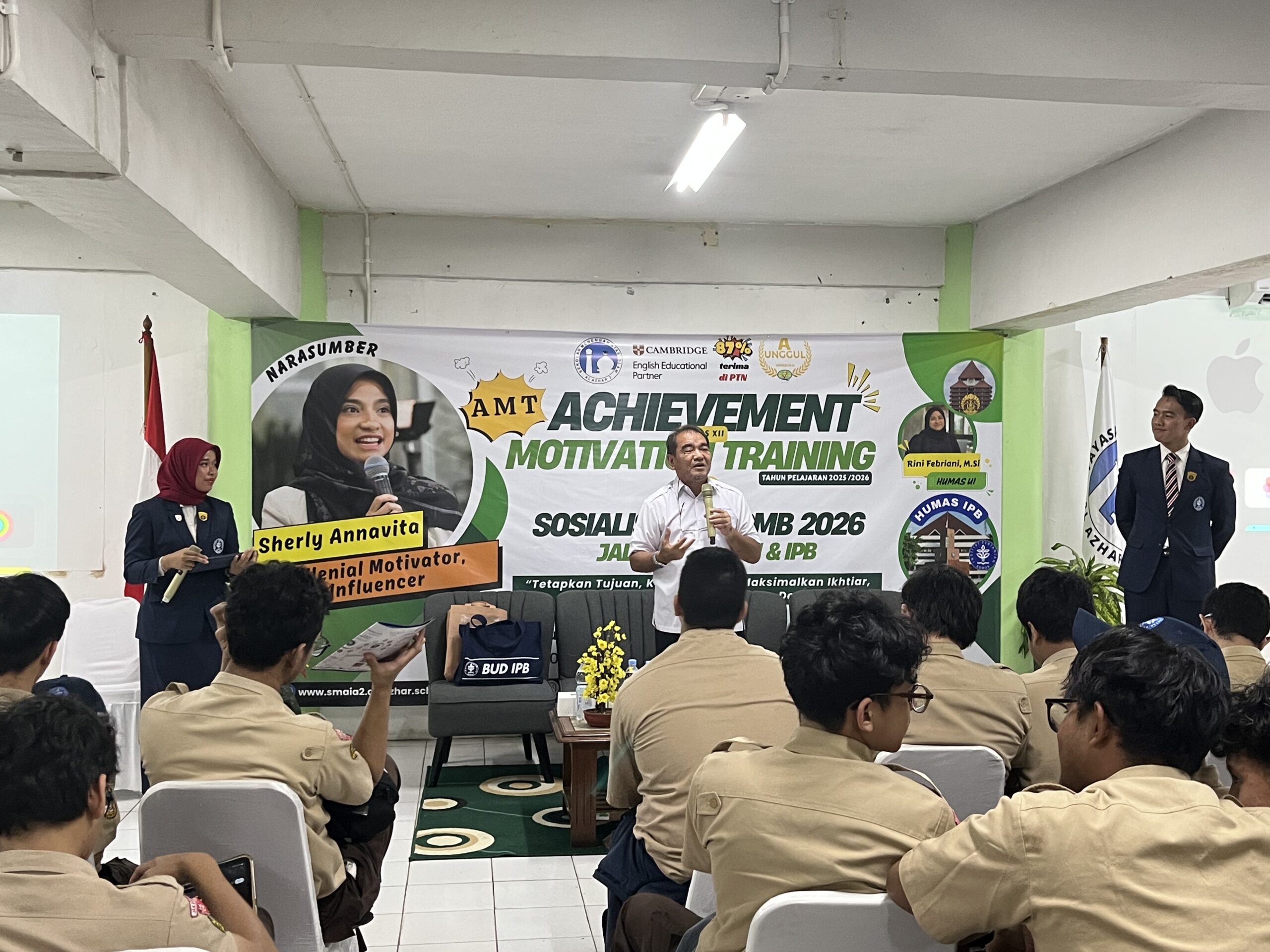 Sosialisasi disampaikan oleh Duta IPB University, Satria Nugraha Putra dan Sarah Alia Rubi, yang menjelaskan jalur masuk IPB University, yaitu SNBP, SNBT, serta Jalur Kemitraan BUD. Kegiatan yang diikuti oleh siswa kelas XII dan orang tua secara hybrid ini berlangsung interaktif dengan berbagai pertanyaan seputar beasiswa dan kehidupan kampus.